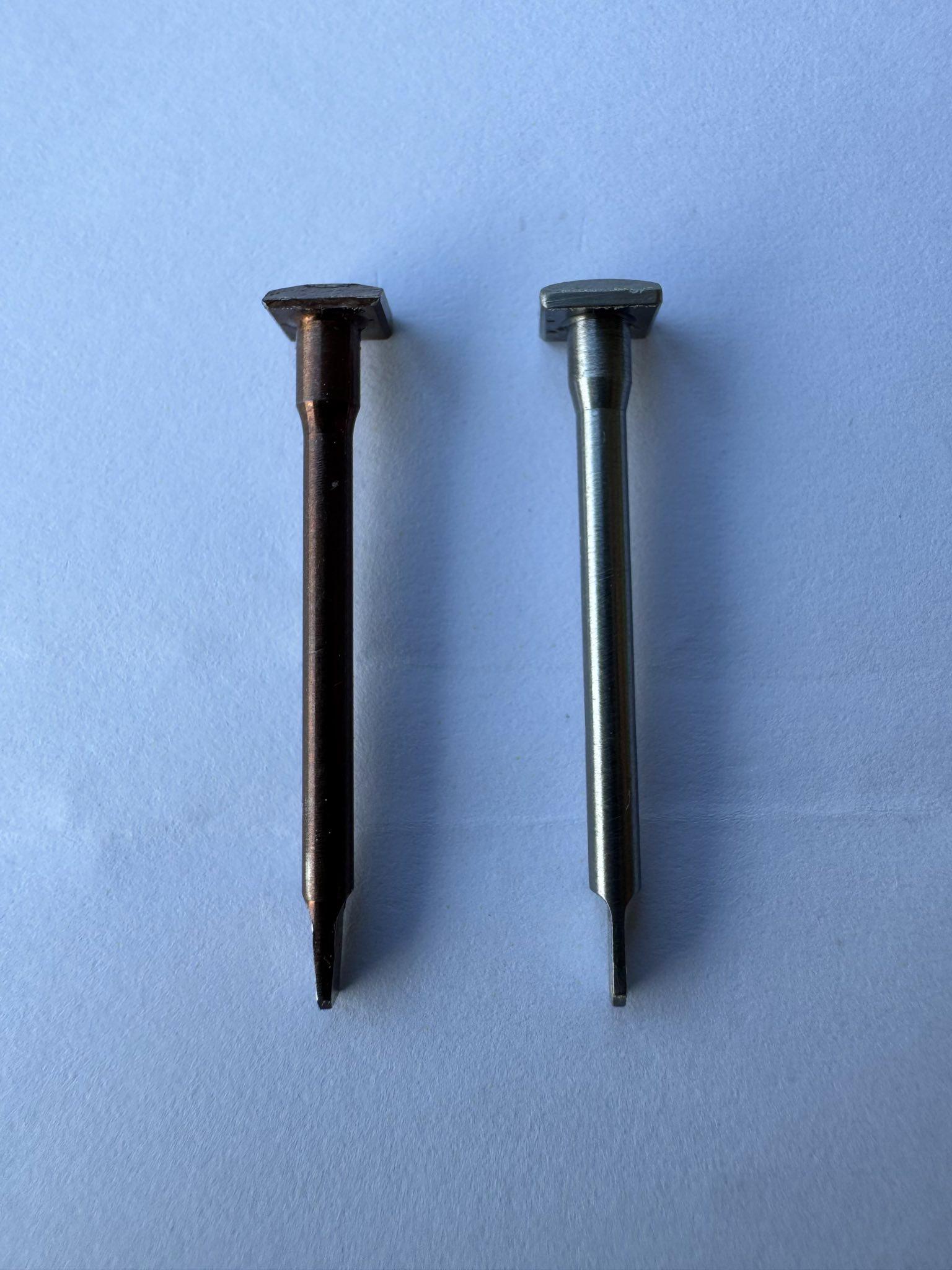 Photos shows the Benelli OEM firing pin compared to the LPGWorks Replacement Firing pin.